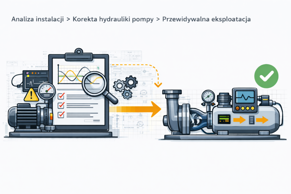 W wielu przypadkach zmiana geometrii wirnika lub parametrów hydraulicznych eliminuje problemy eksploatacyjne bez konieczności wymiany całego urządzenia.